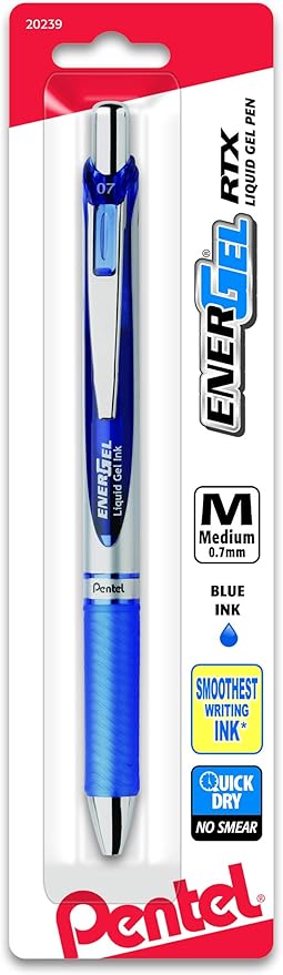 pentel energel pens 0.7 metal tip blue