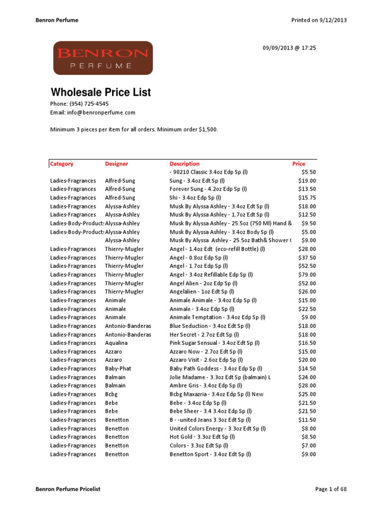 perfume price list