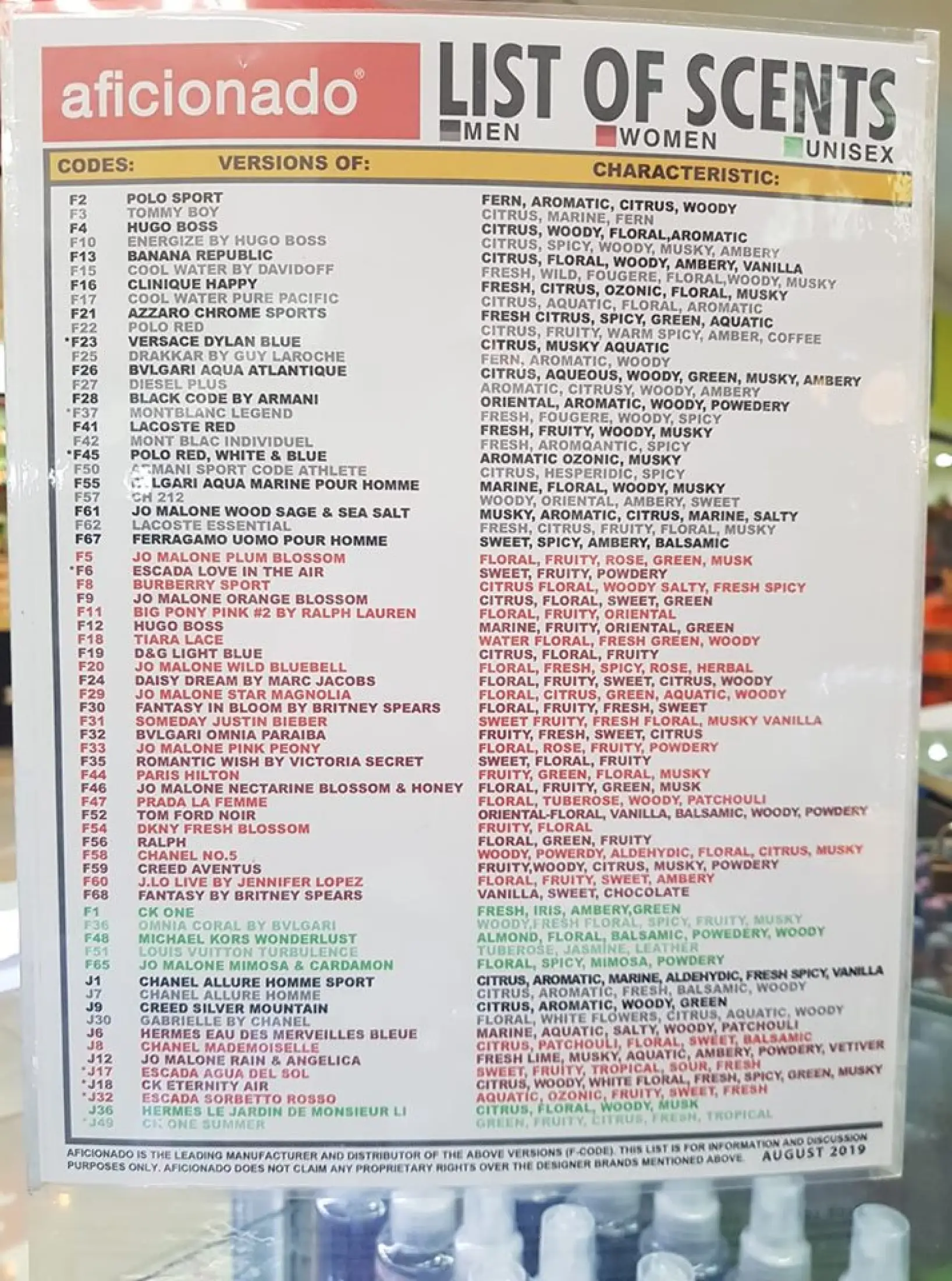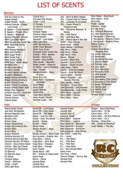 perfume scents list