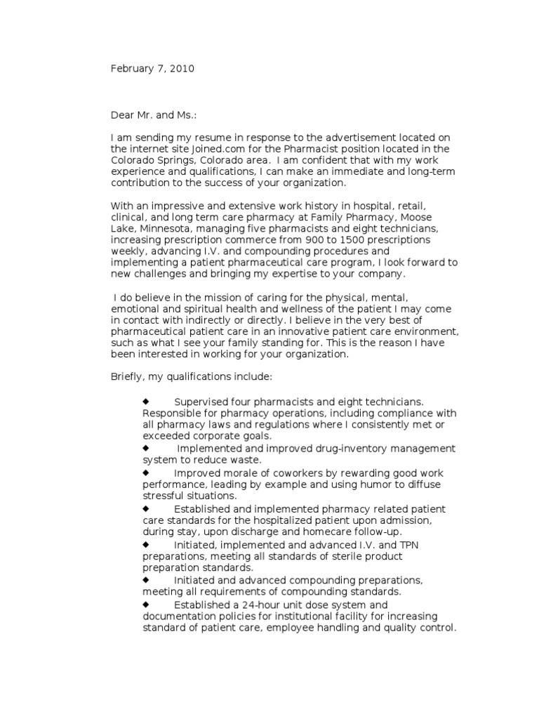 pharmacist cover letter