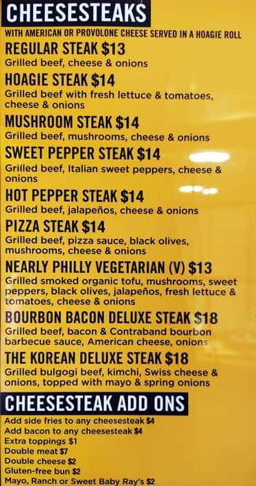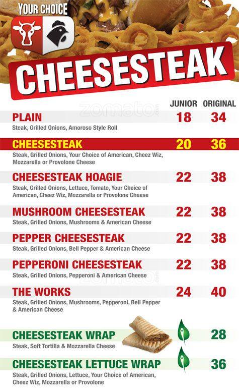 philly cheesesteak menu