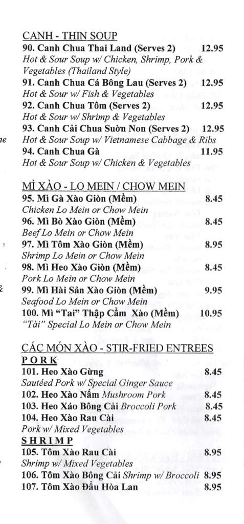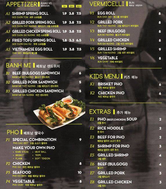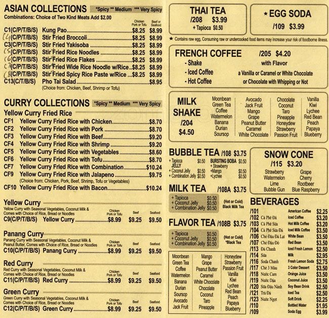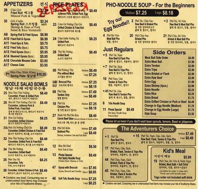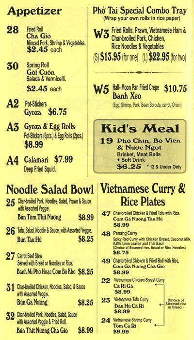 pho tai menu