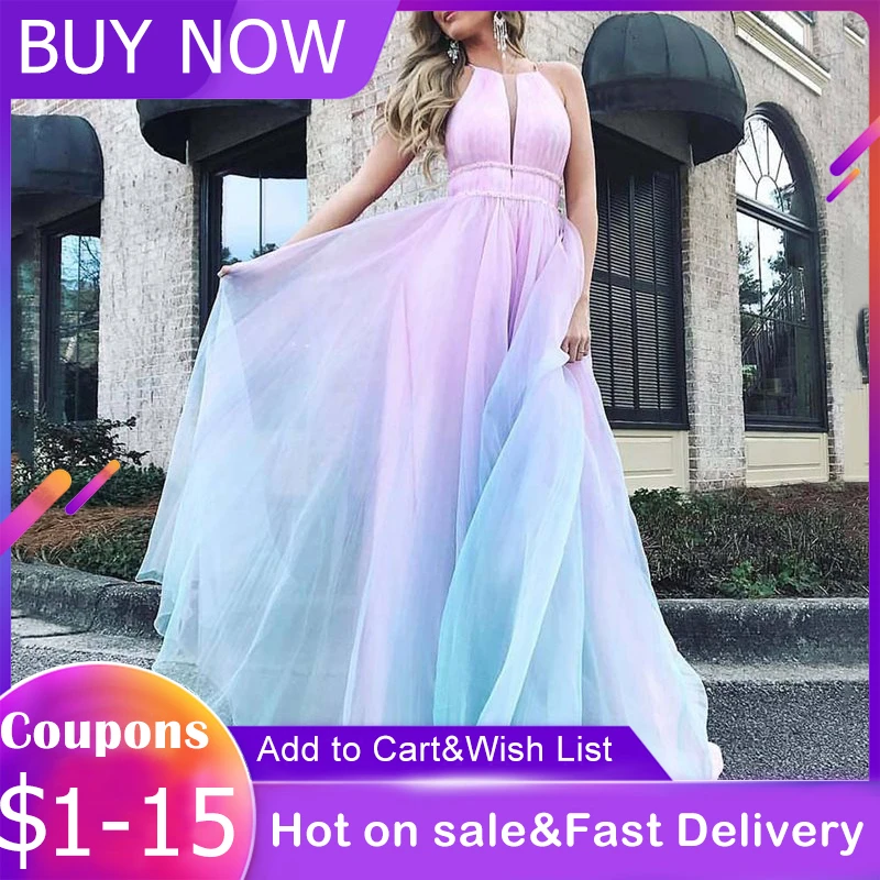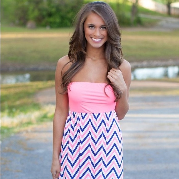 pink and blue maxi dress