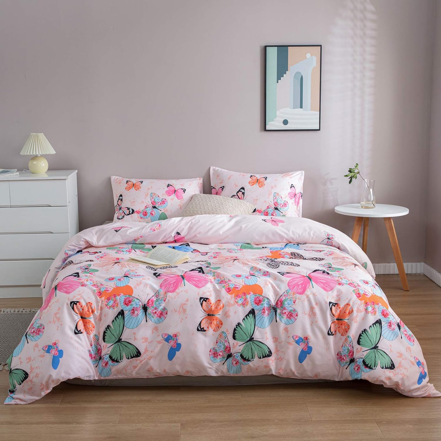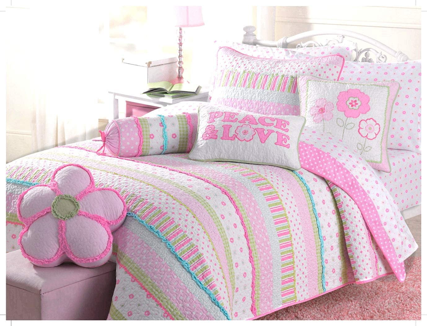pink and green bedding