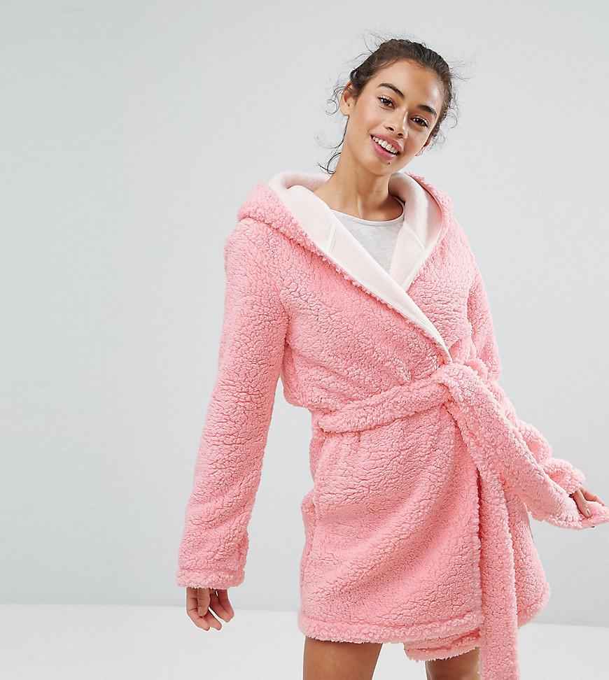 pink fluffy dressing gown