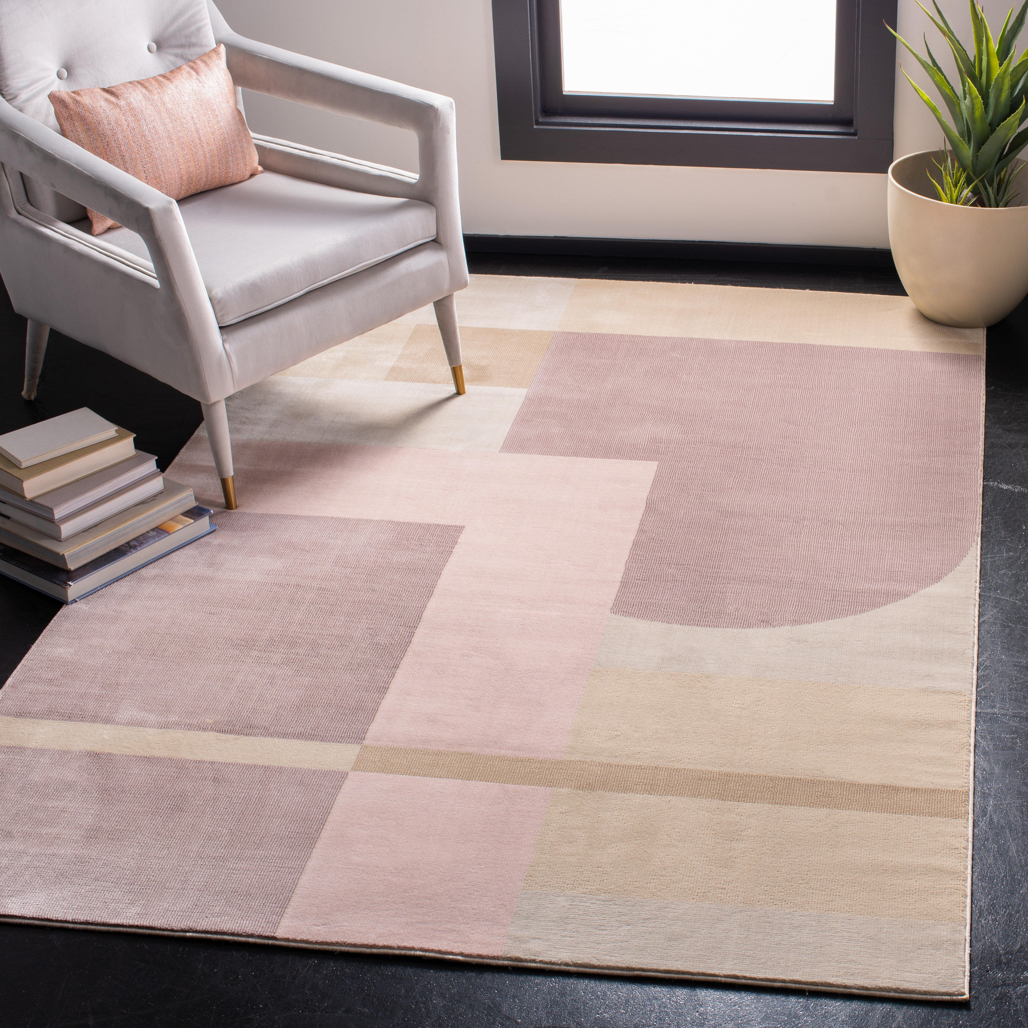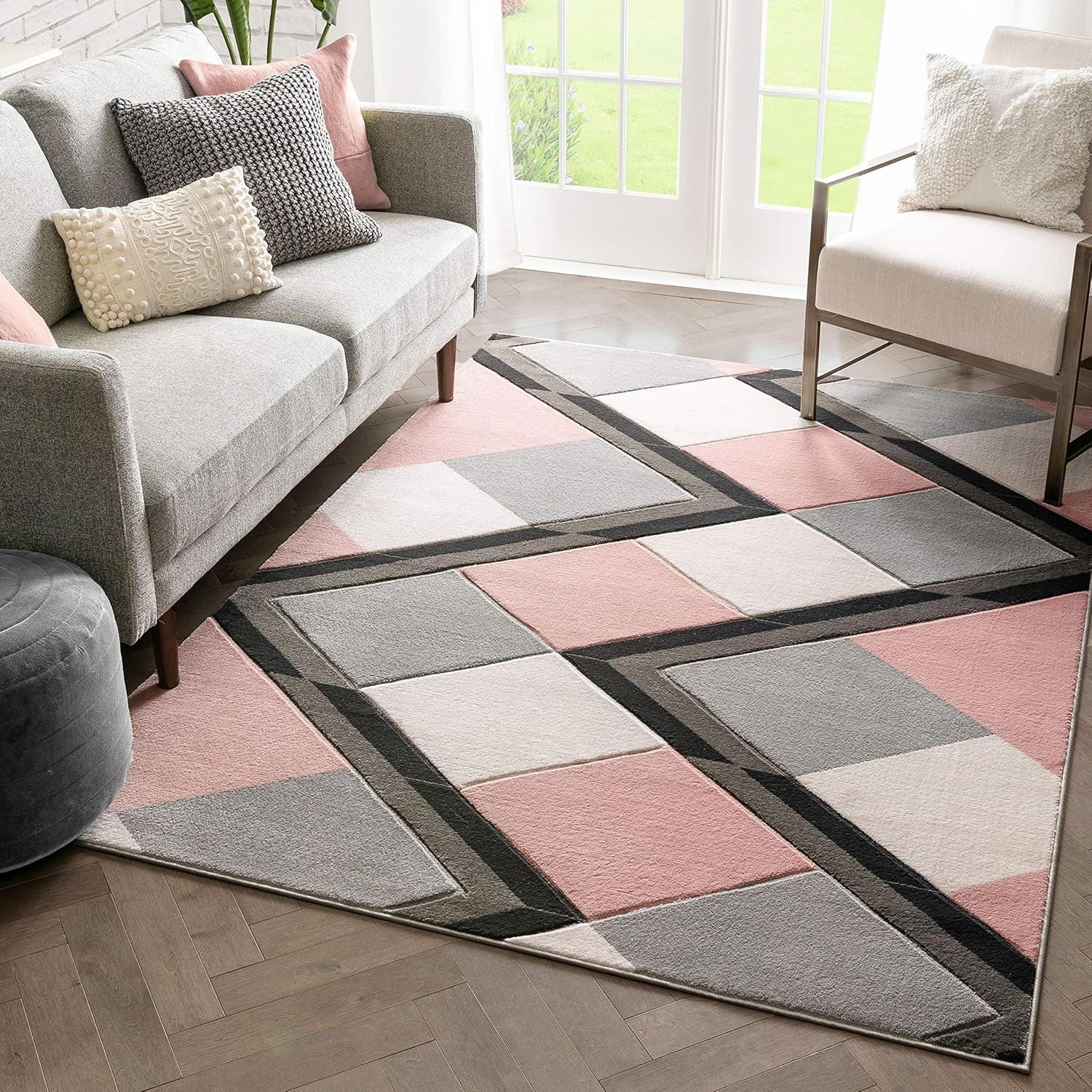 pink geometric rug