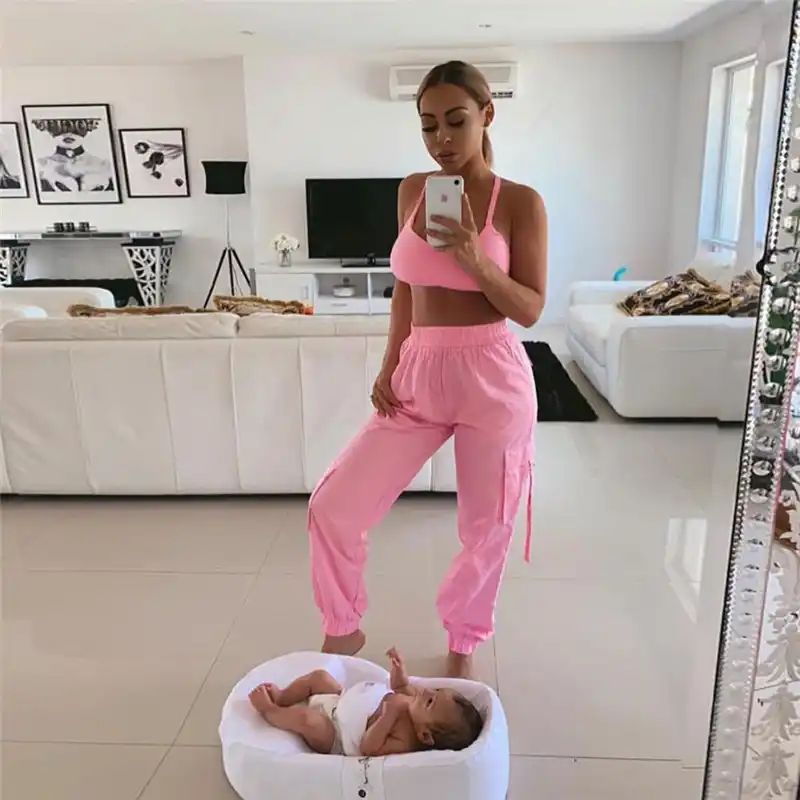 pink joggers outfit