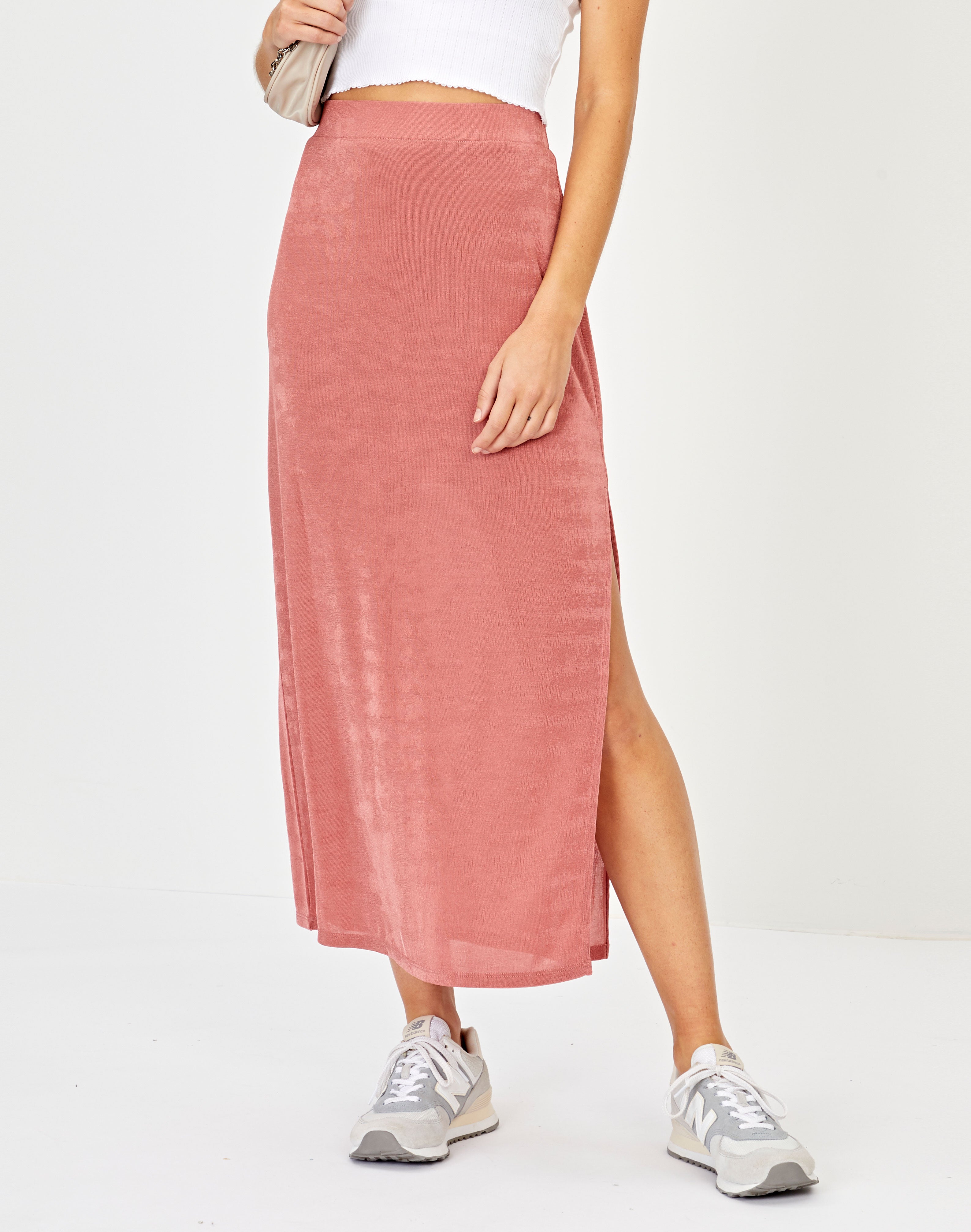 pink midi skirt