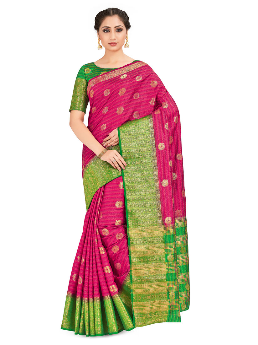 pink saree with green blouse