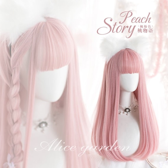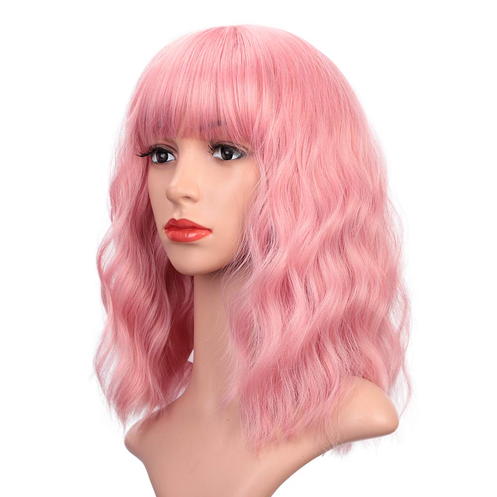 pink wig with bangs
