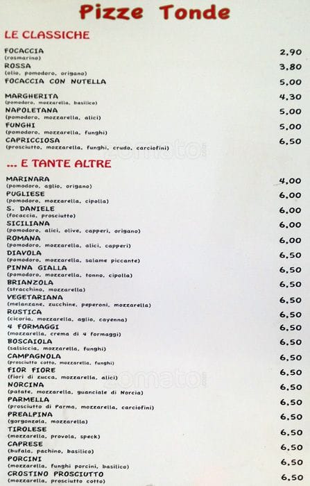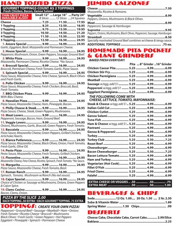 pizza amore menu