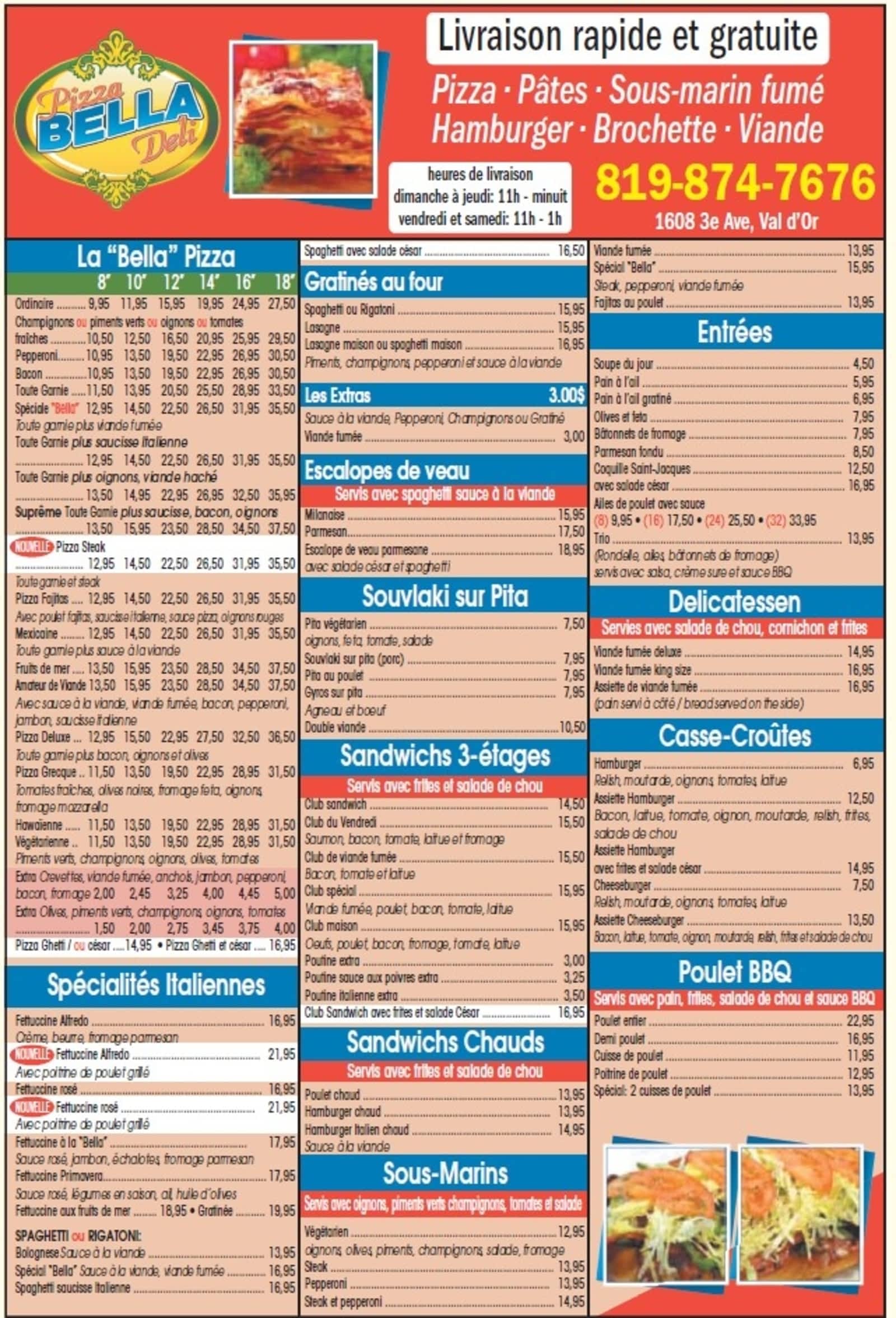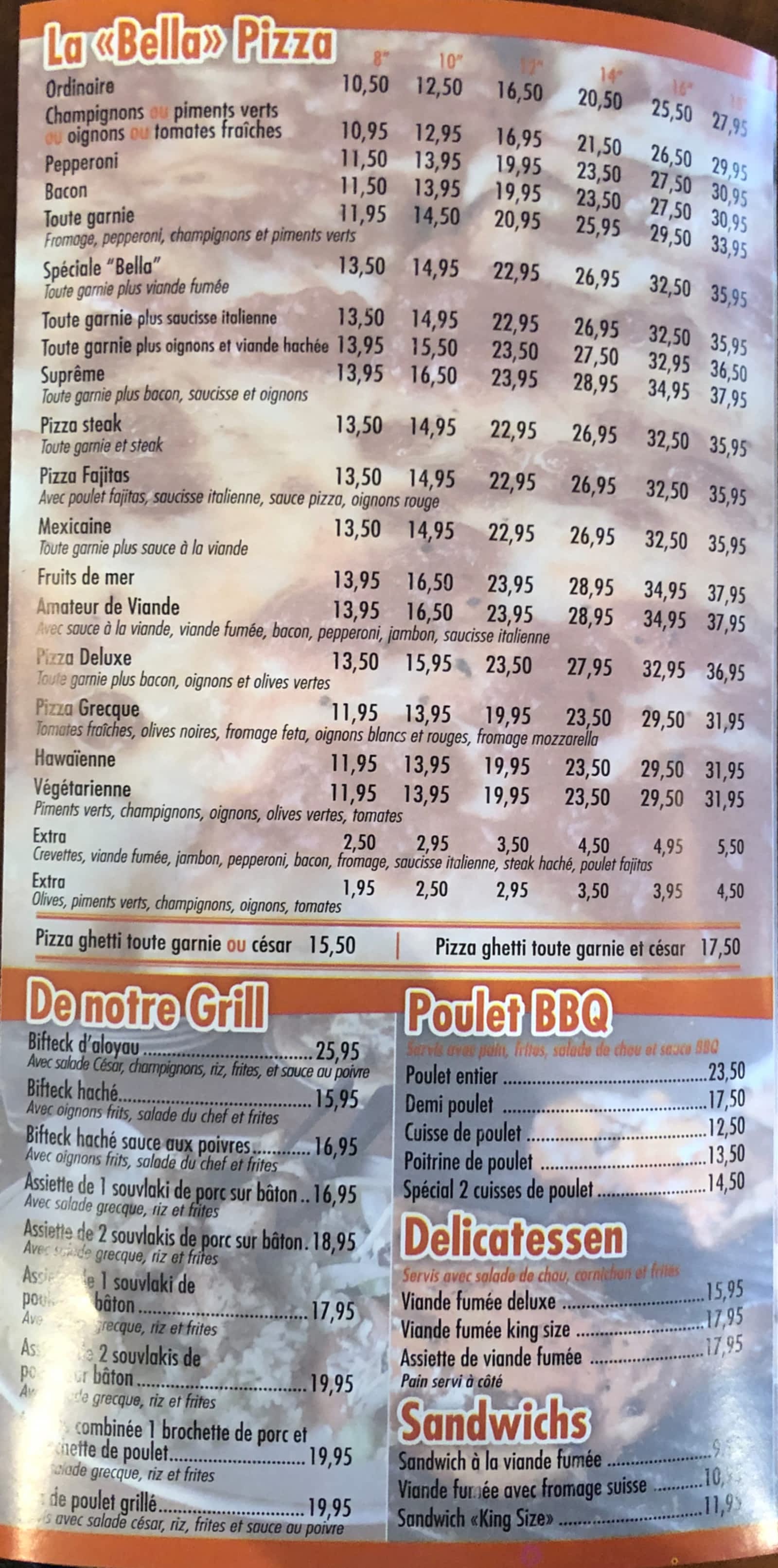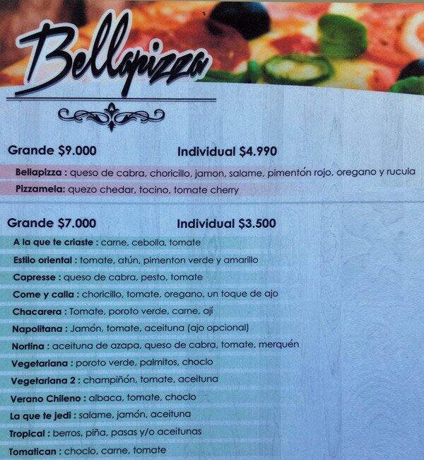 pizza bella menu