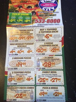 pizza city menu