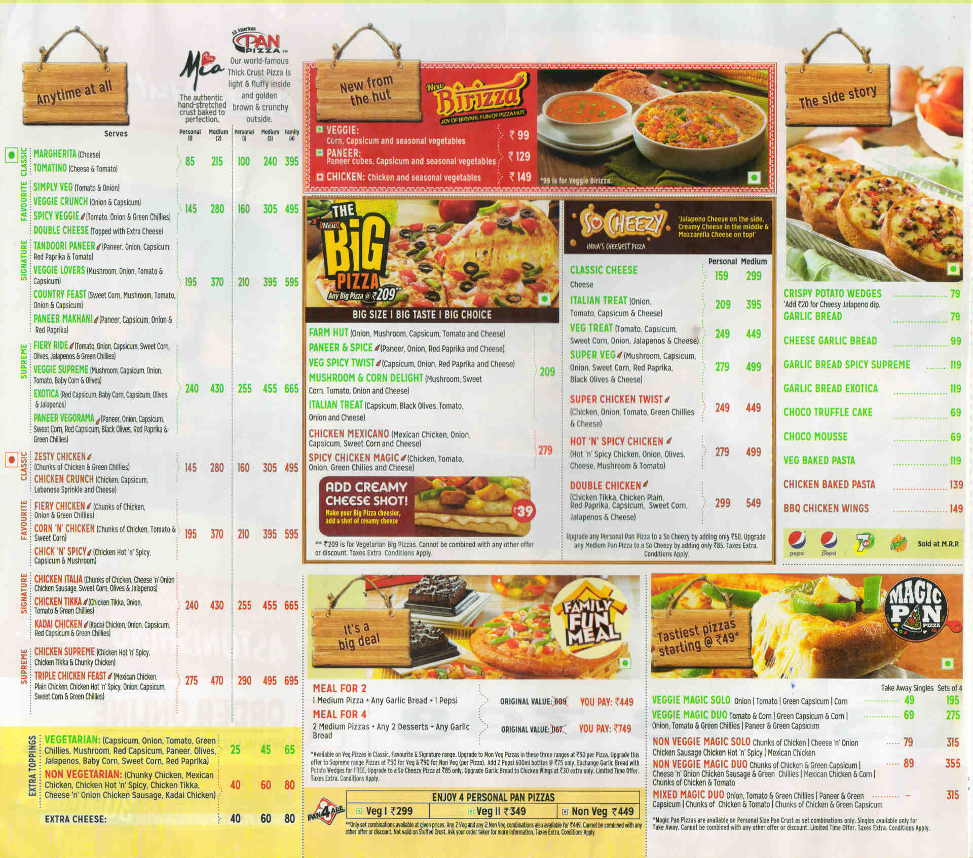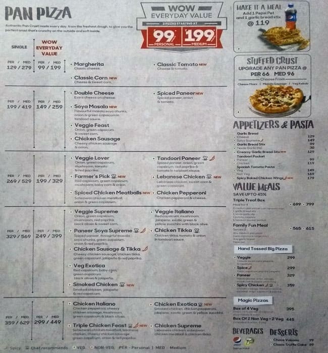pizza hut menu card