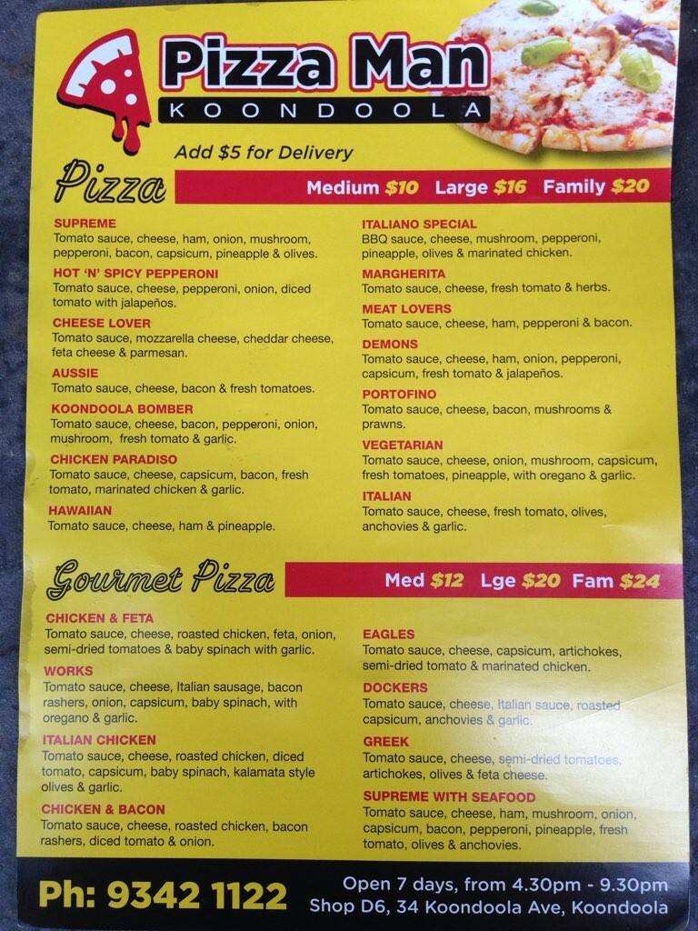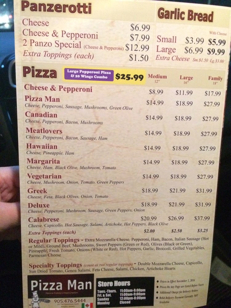 pizza man menu
