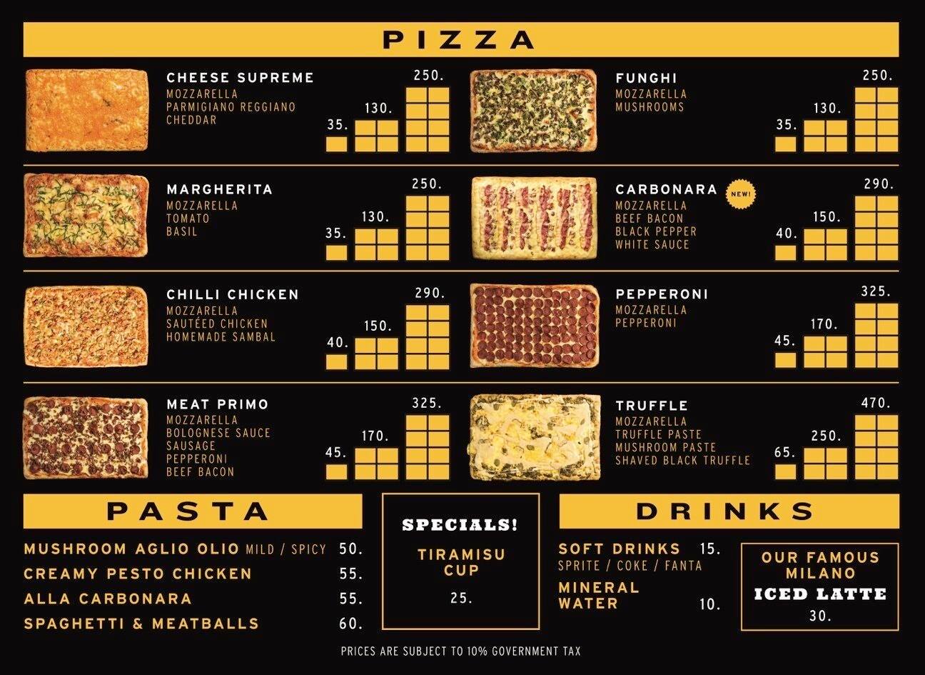 pizza milano menu