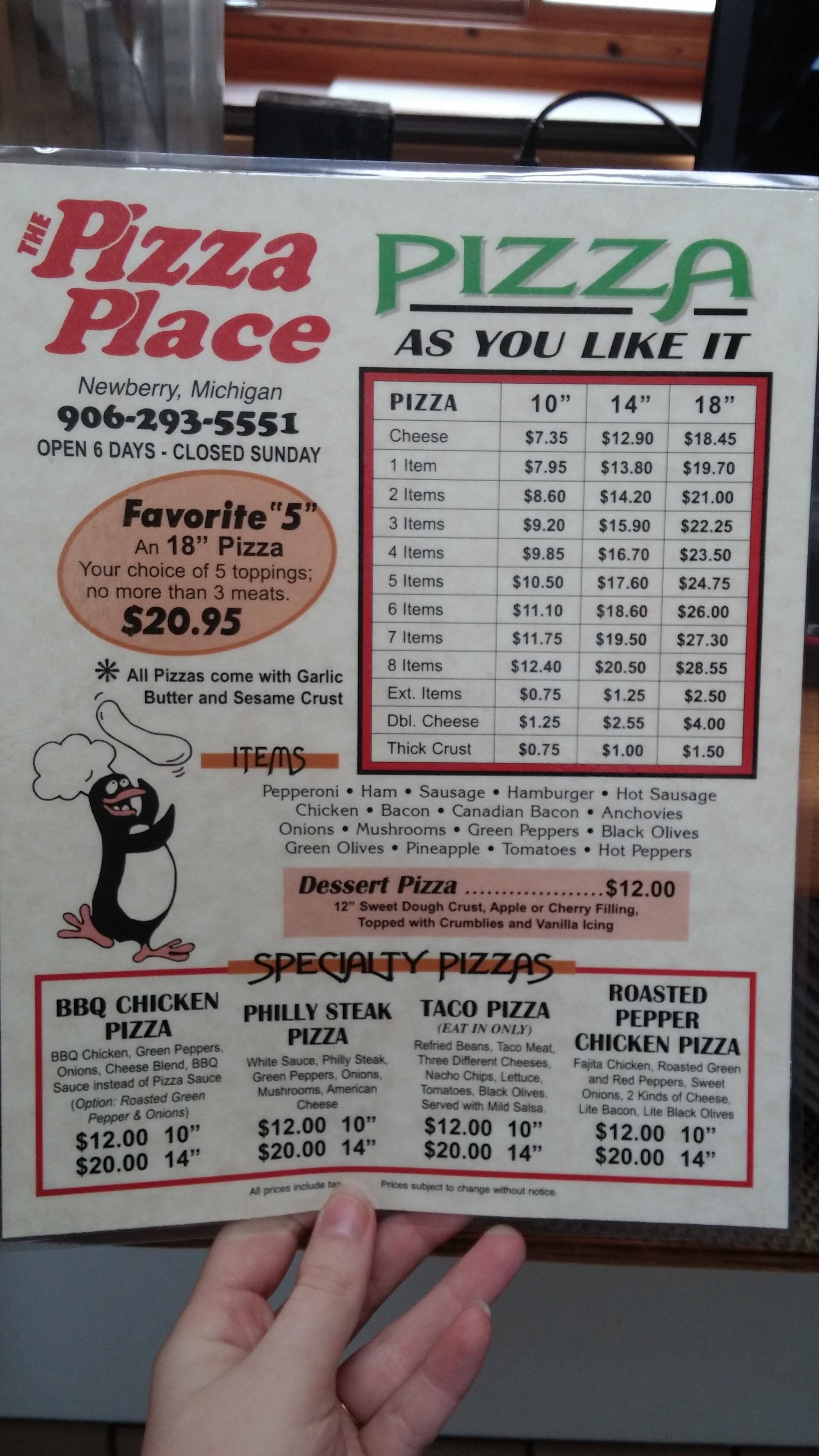 pizza place menu