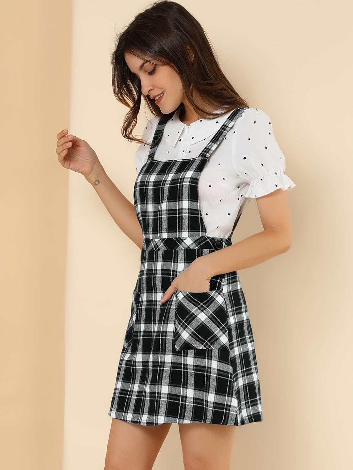 plaid overall dress