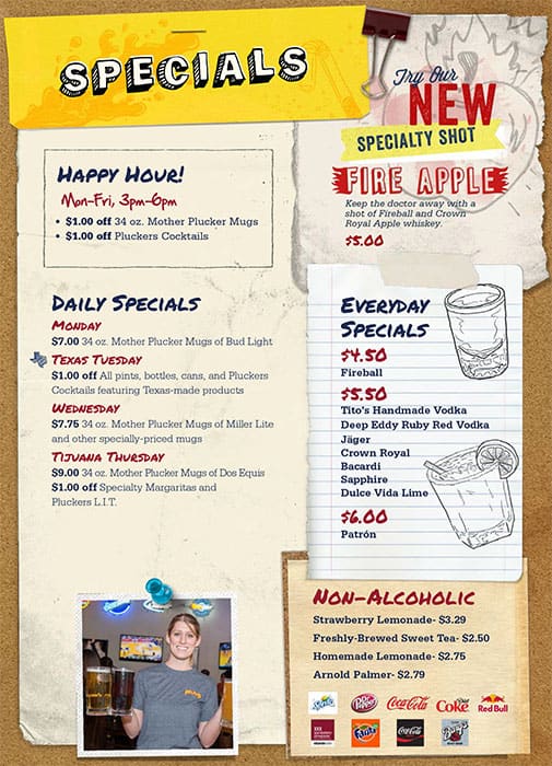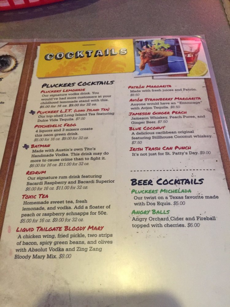 pluckers drink menu