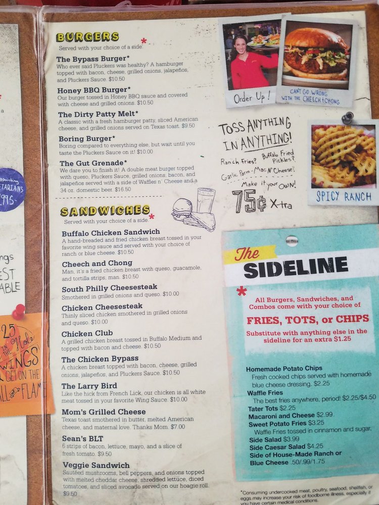 pluckers menu prices