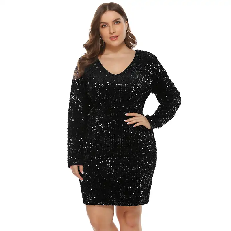 plus size sequin black dress
