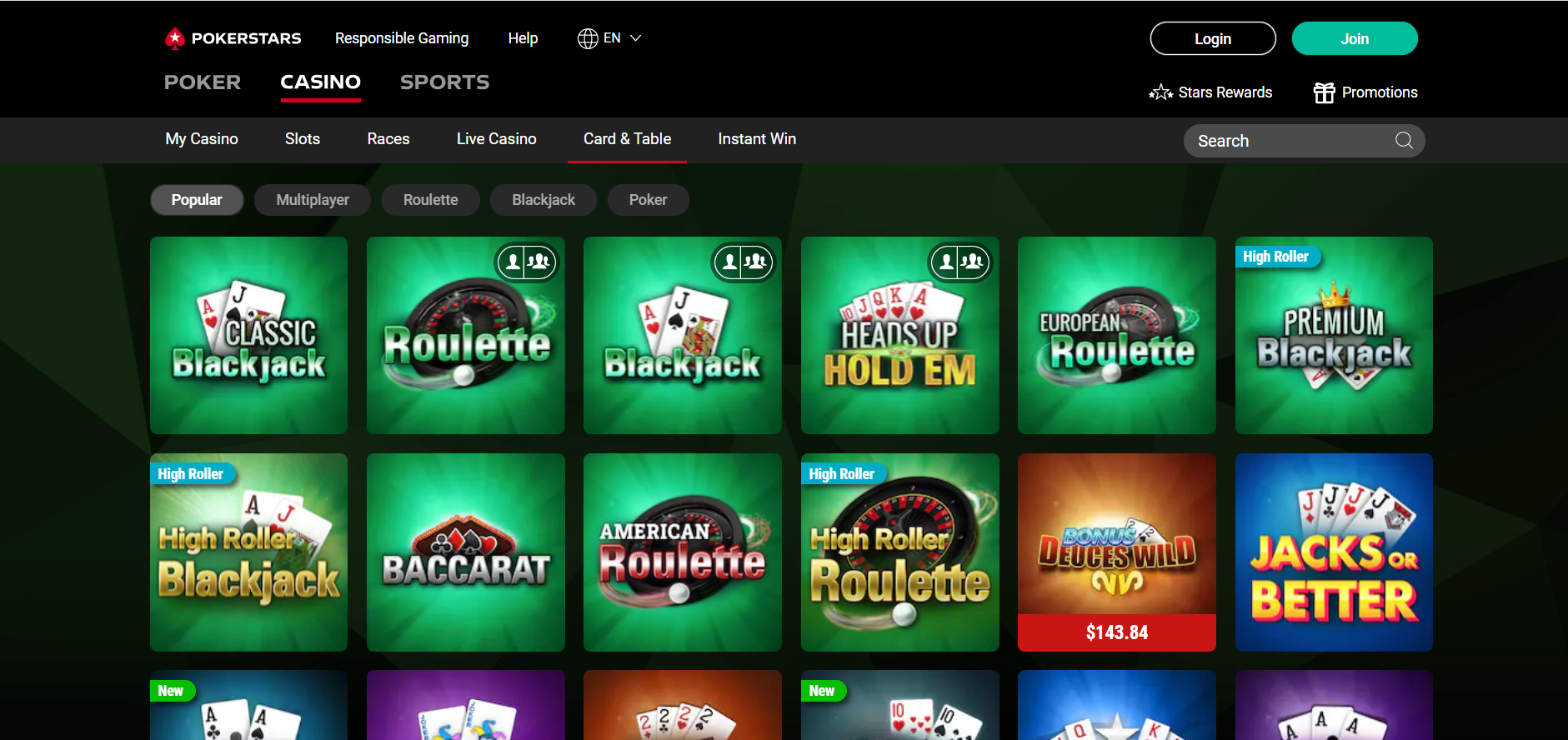 pokerstars blackjack