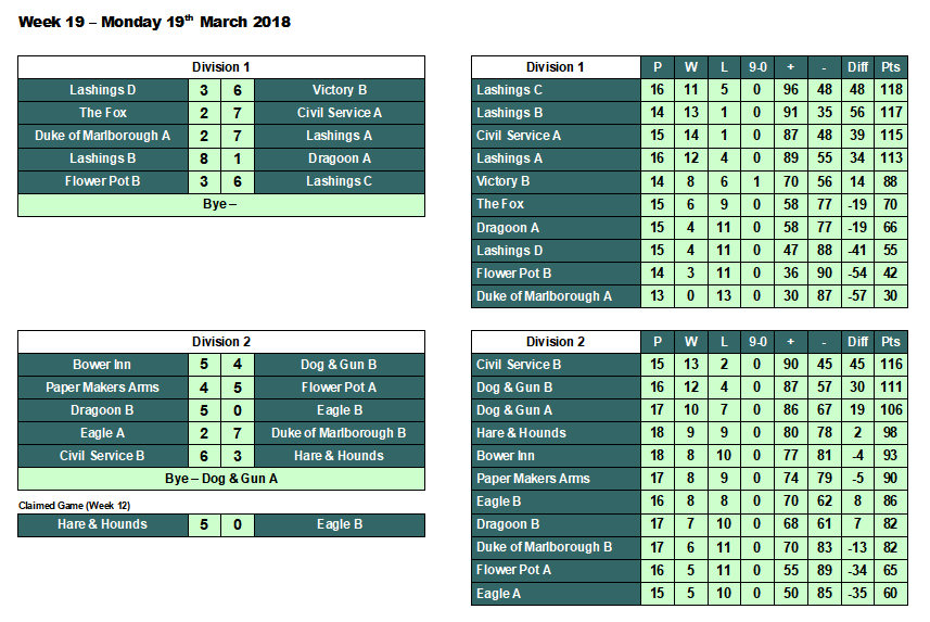 pool result week 19