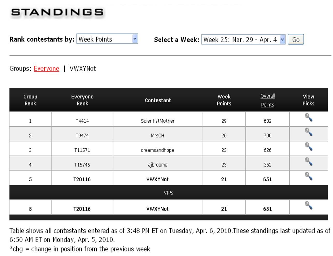 pool result week 25