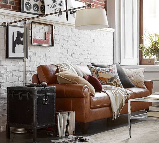 pottery barn leather sofa