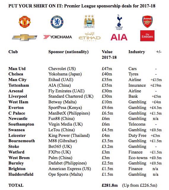 premier league sponsors
