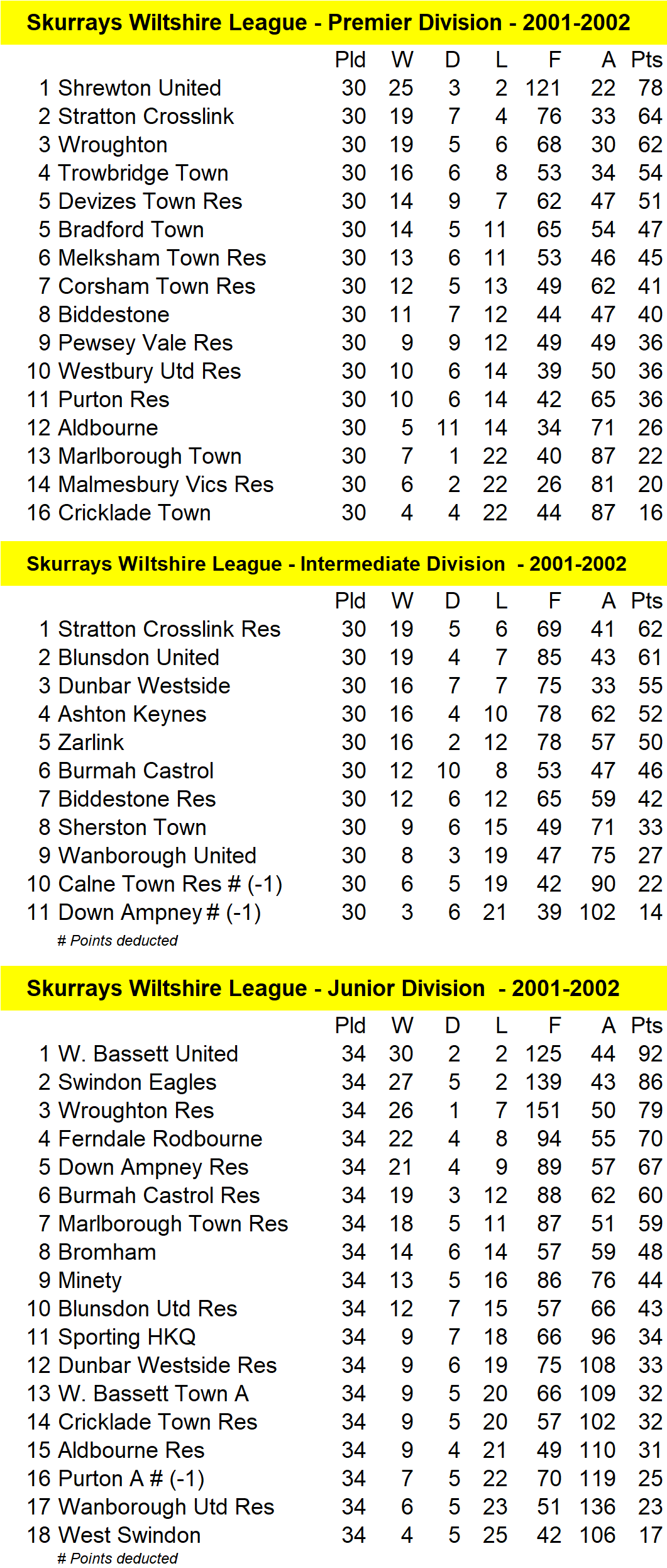 premier league table 2001