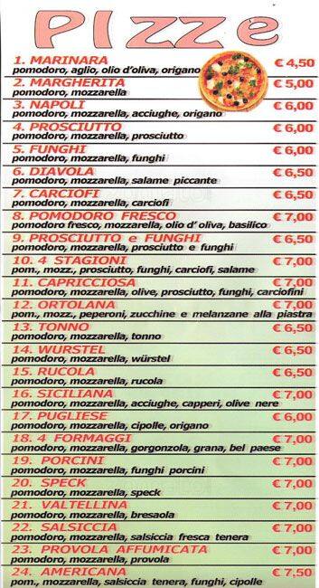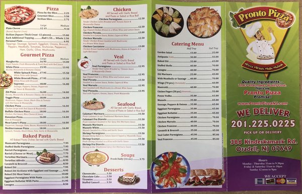 pronto pizza menu
