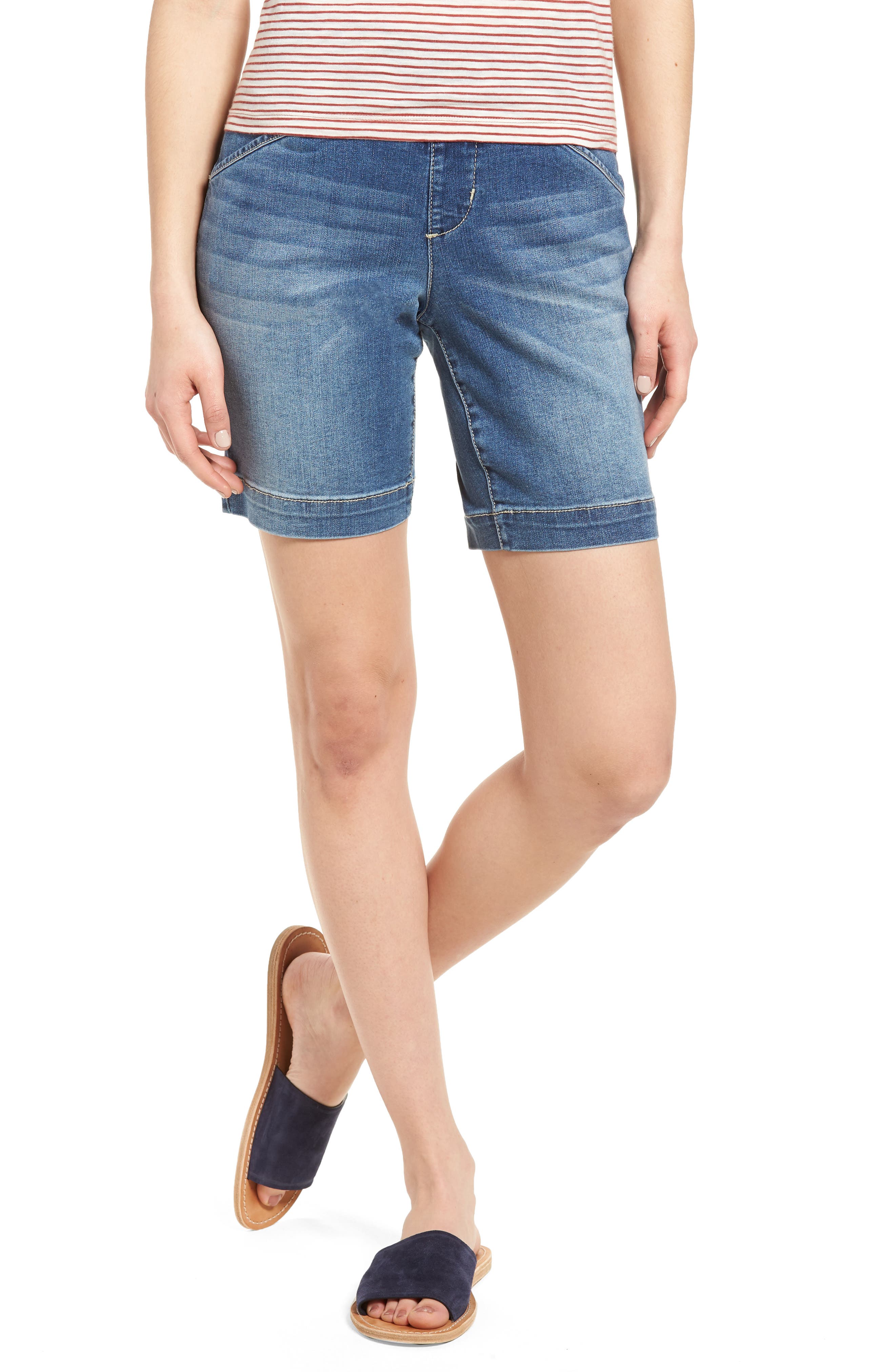 pull on denim shorts