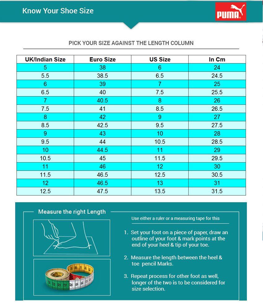 puma shoes size chart