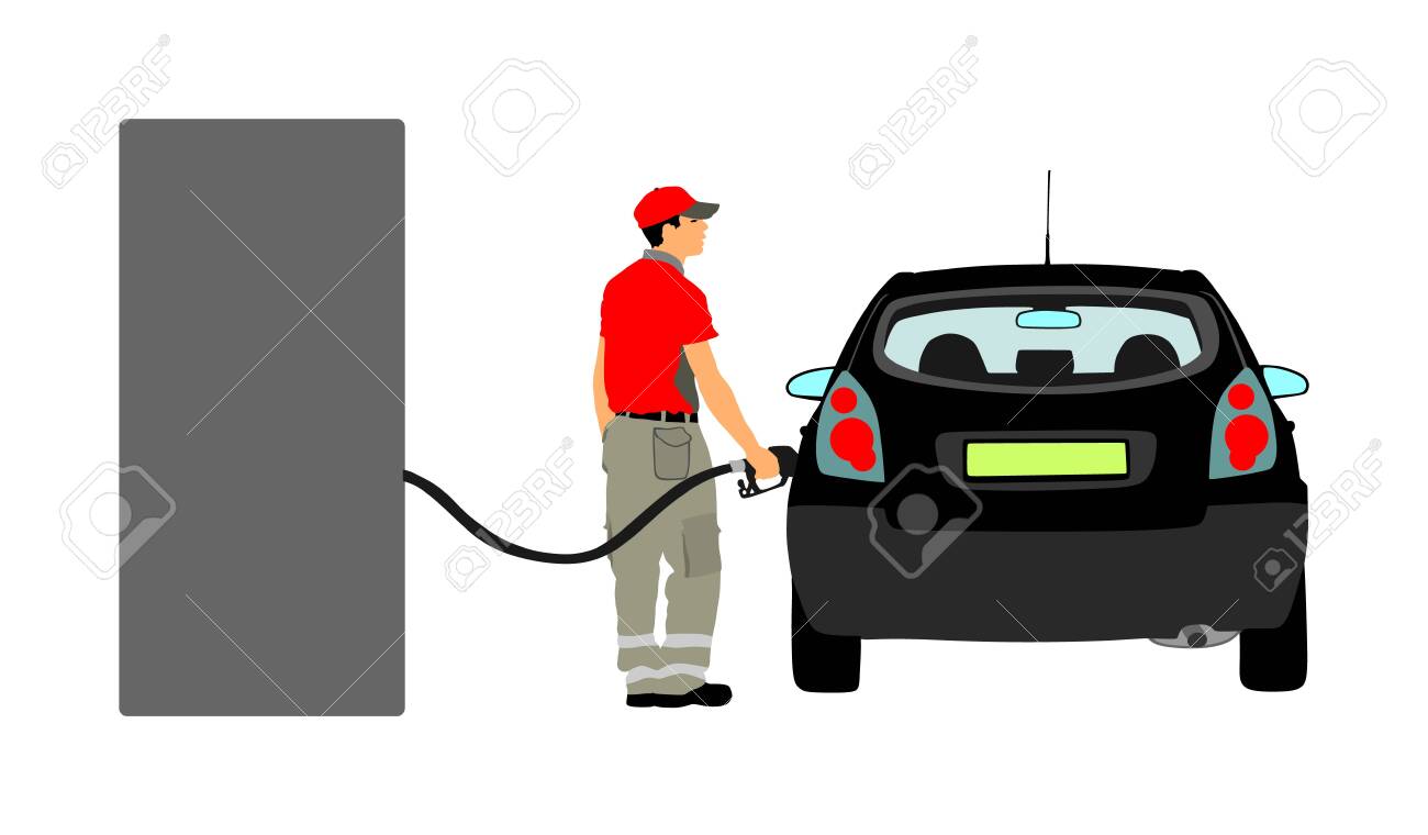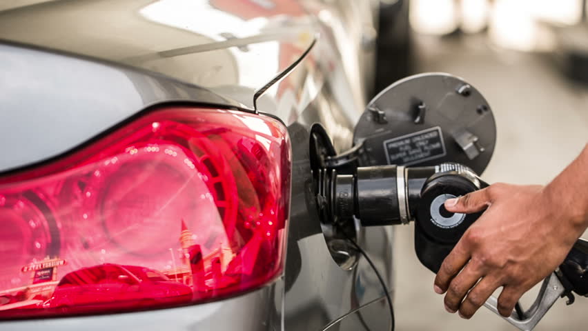 pumping gas with car on