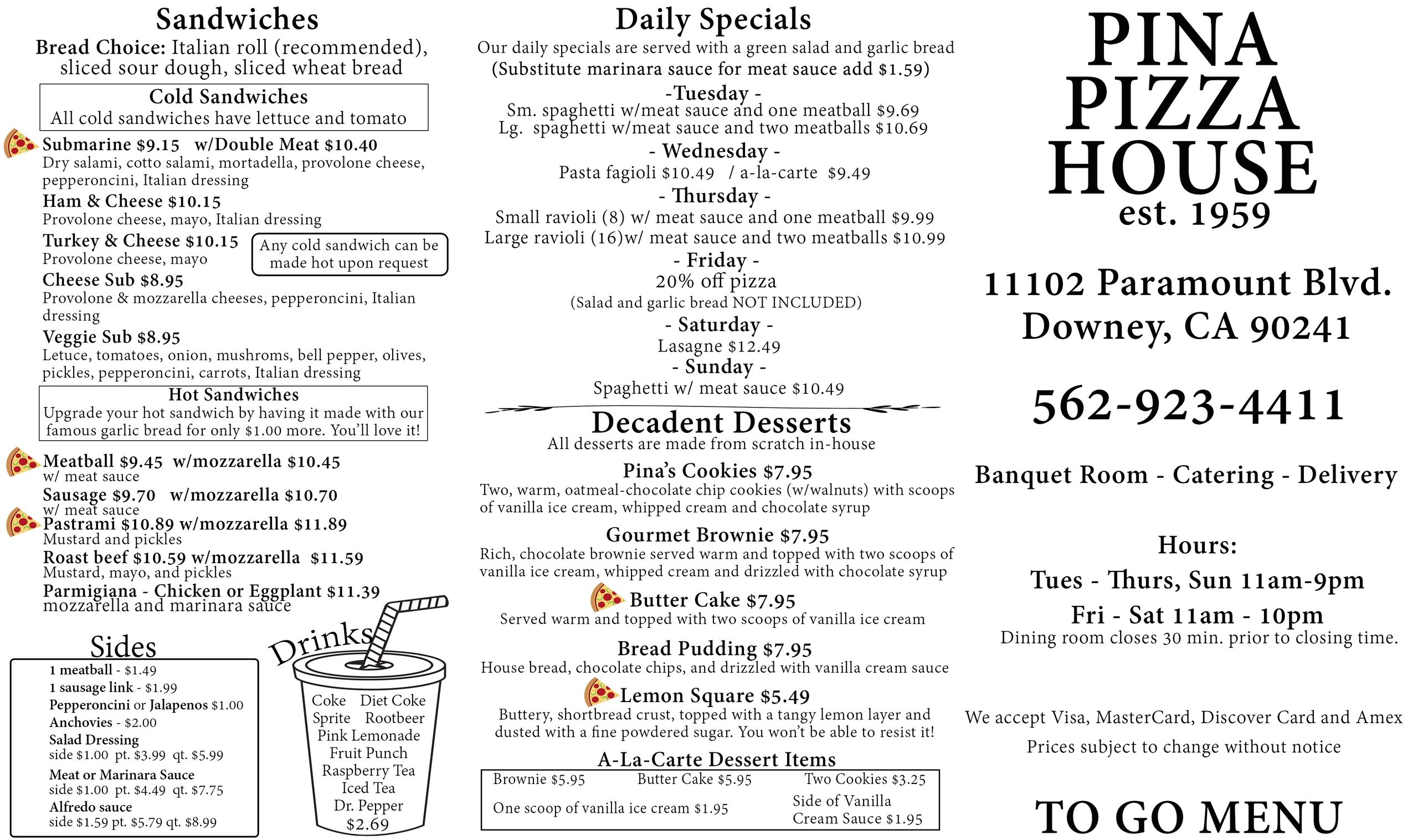 punch pizza menu