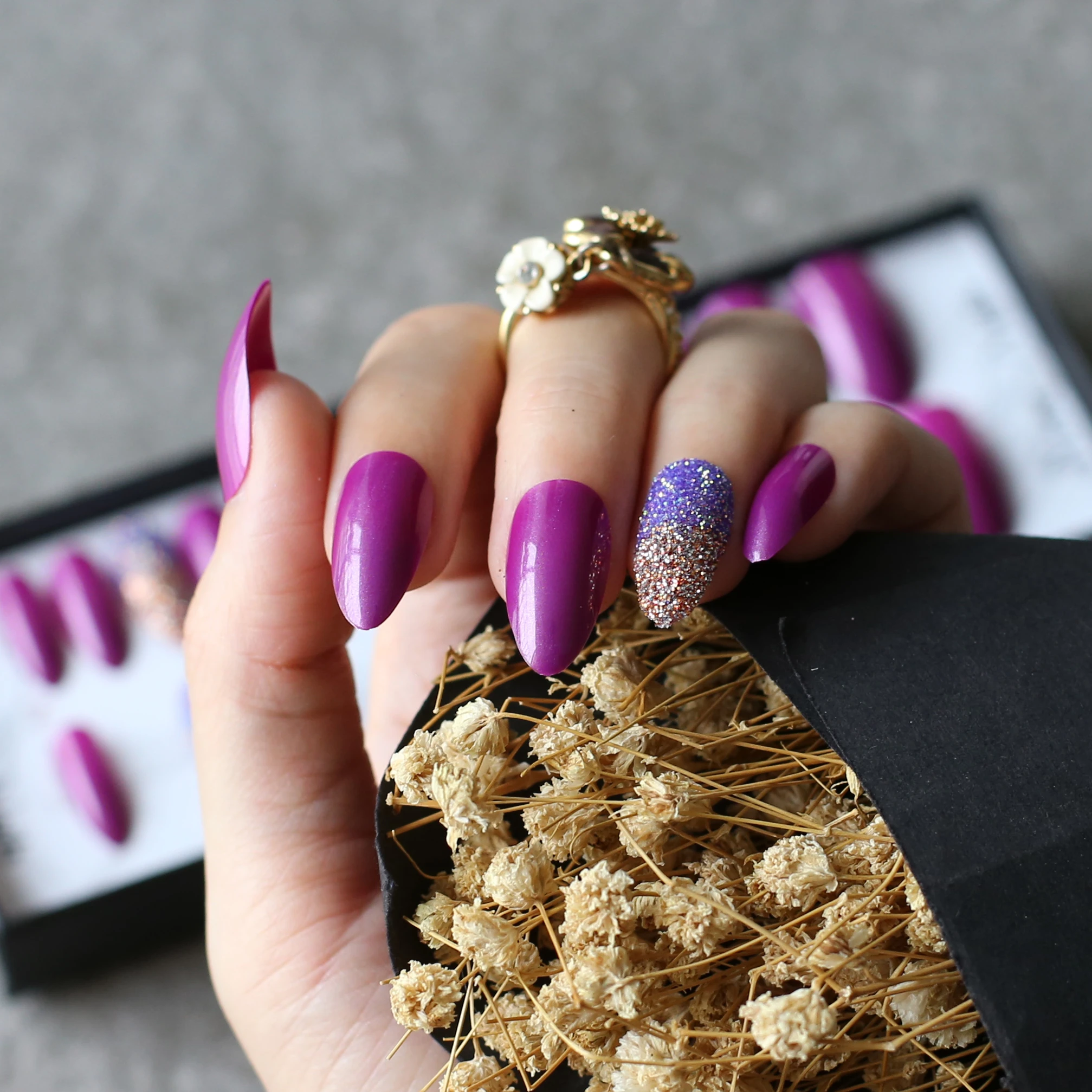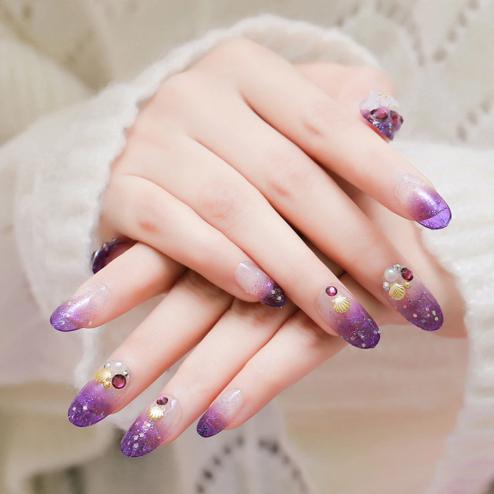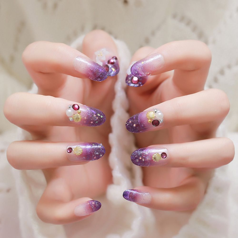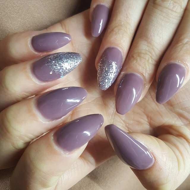 purple glitter acrylic nails