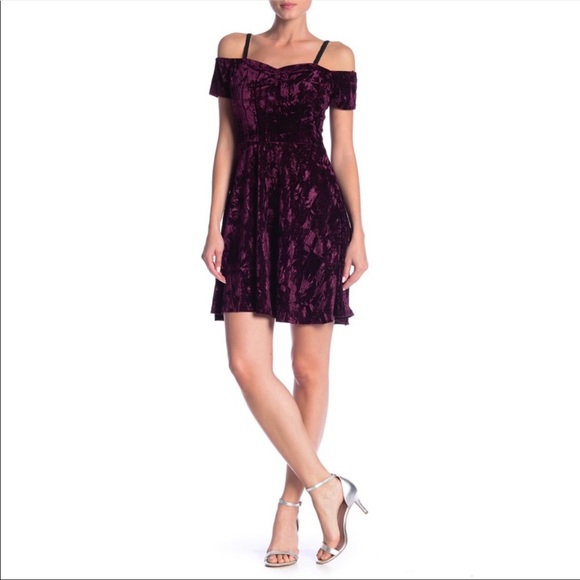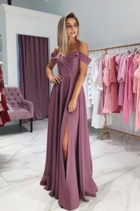 purple off the shoulder dress