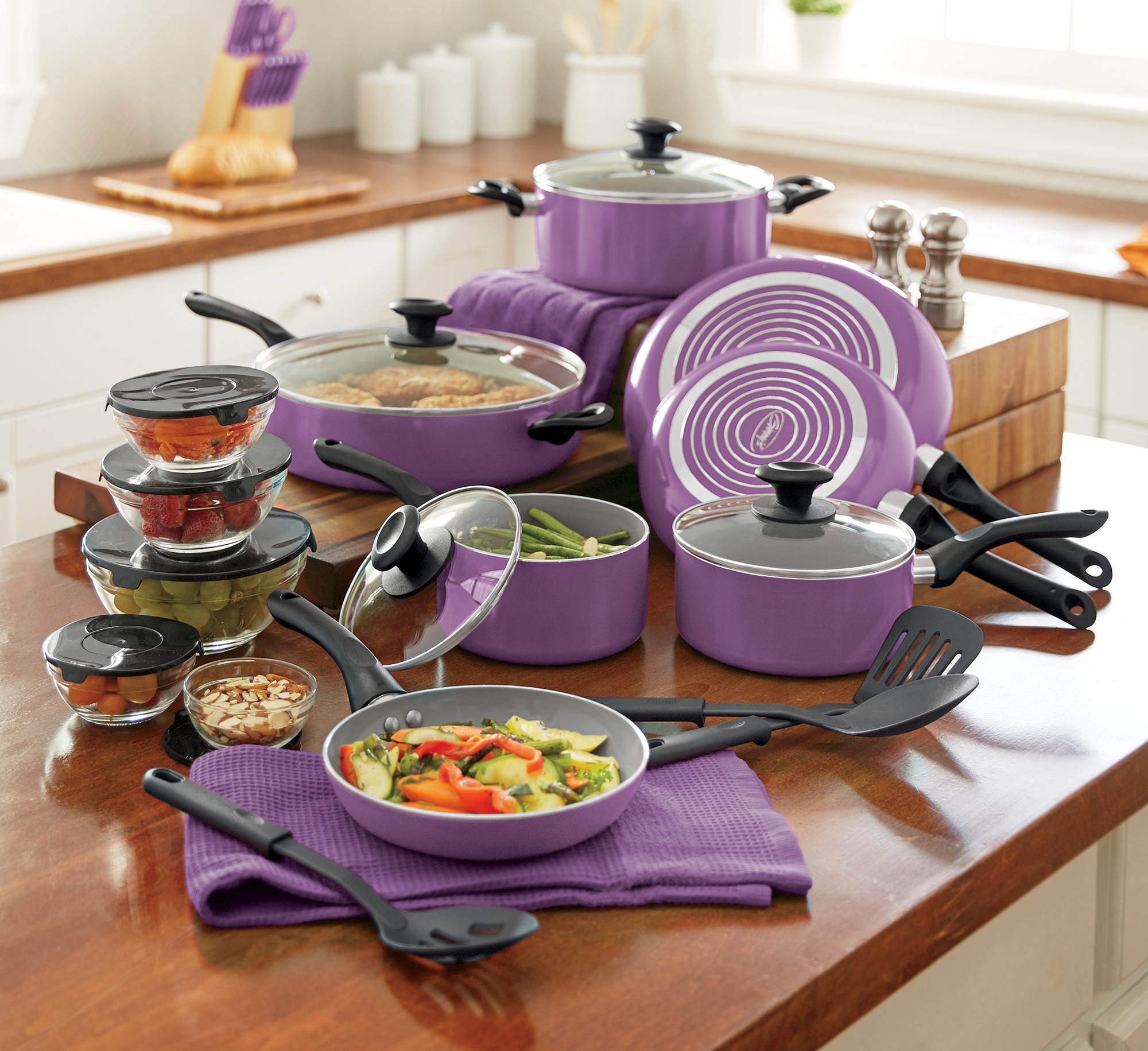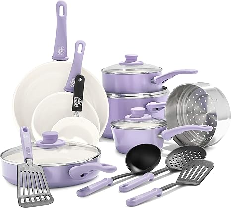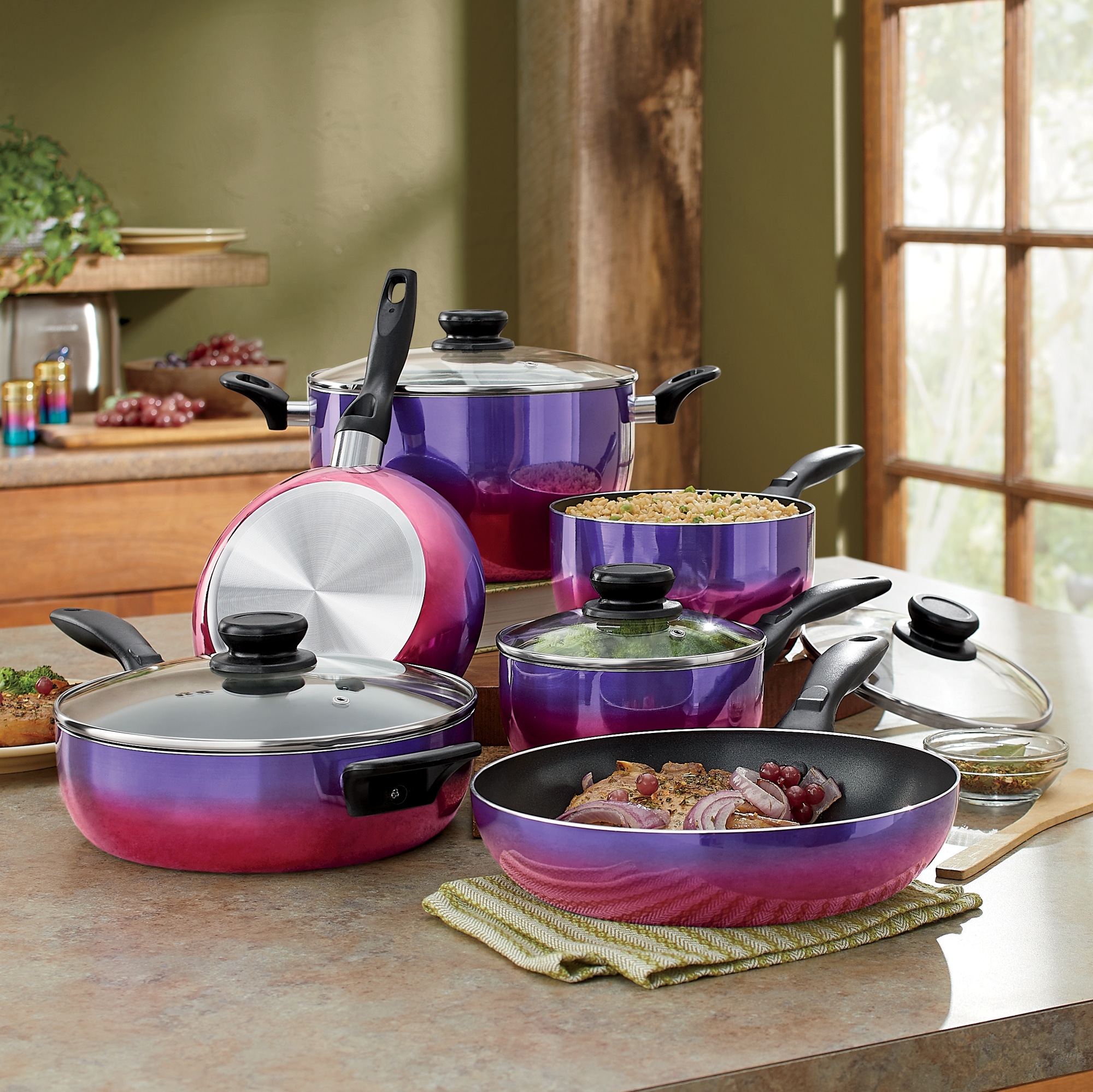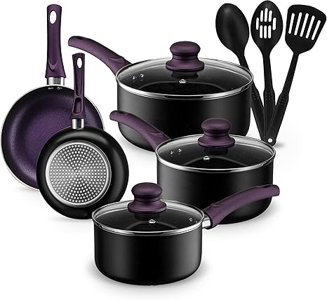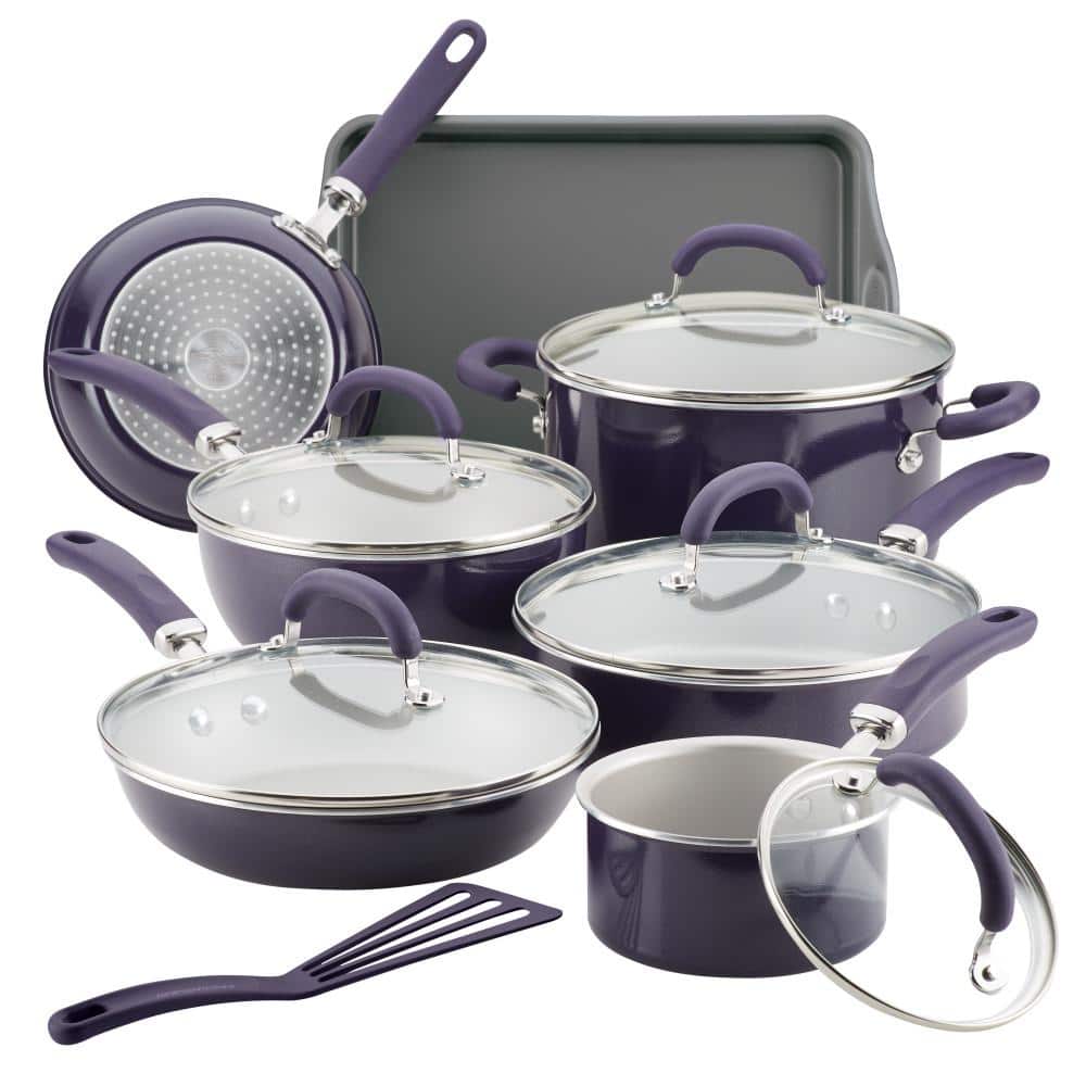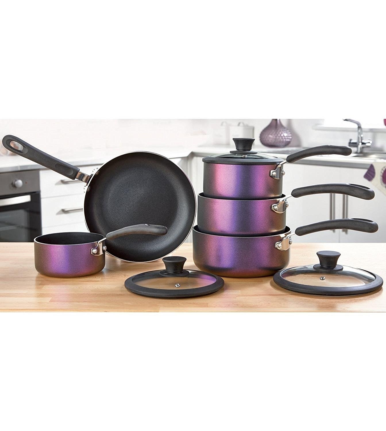 purple pots and pans