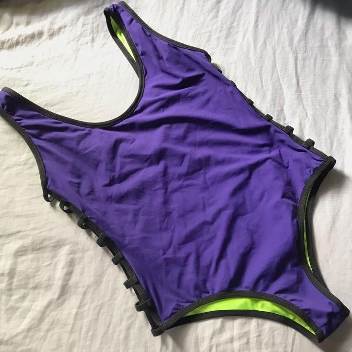 purple swimsuits