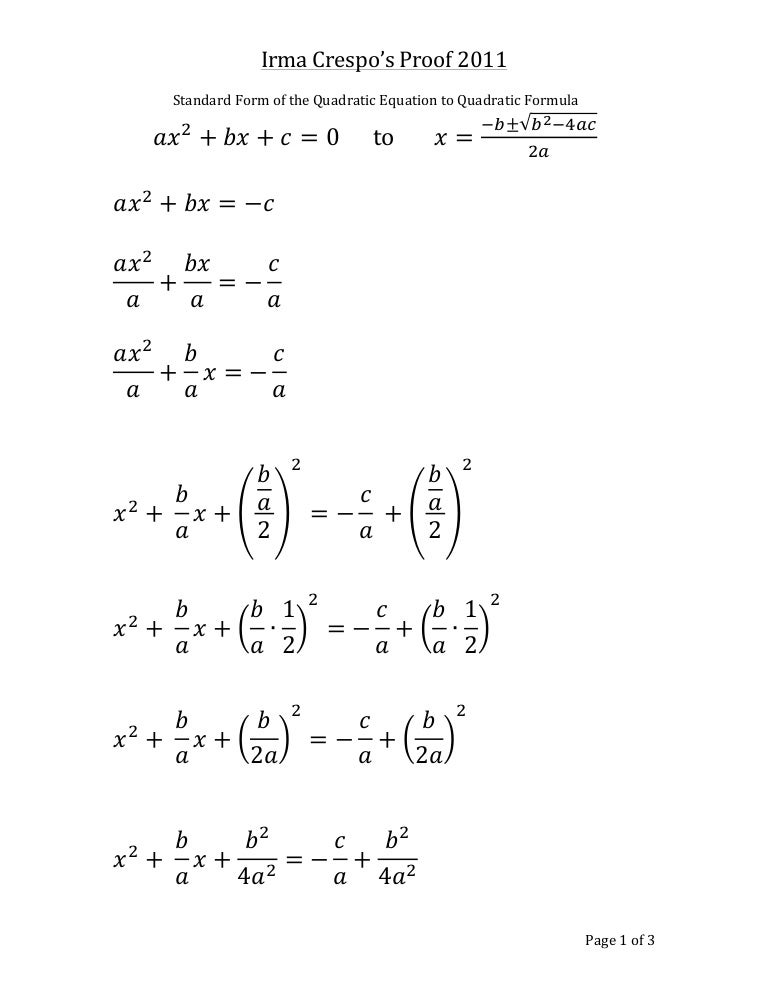 quadratic formula standard form
