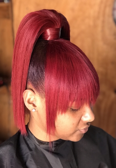 quick weave ponytail with bangs