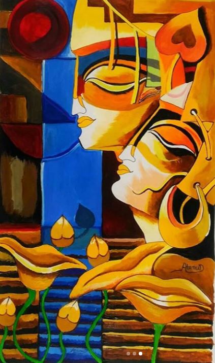 radha krishna abstract painting