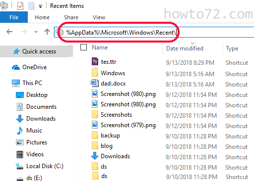 recent files windows 10