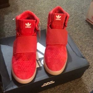 red adidas high tops
