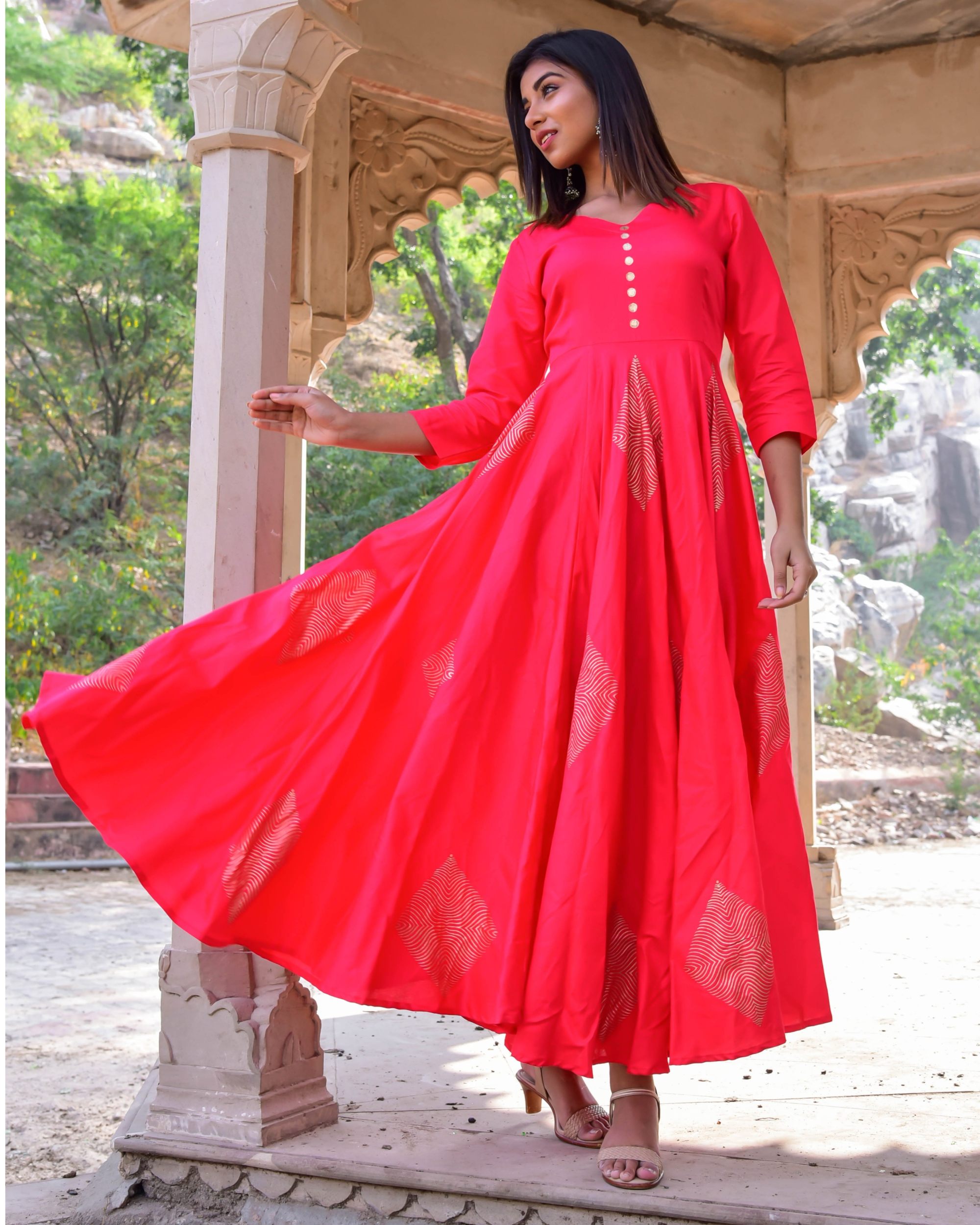 red anarkali dress