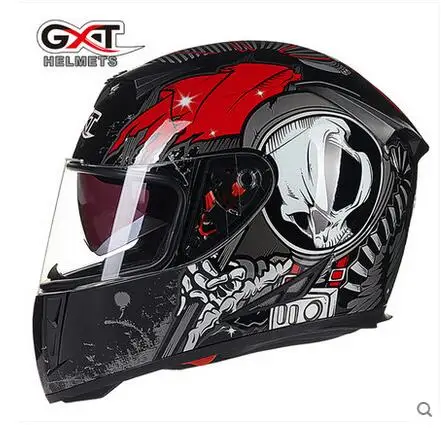 red and black motorcycle helmets