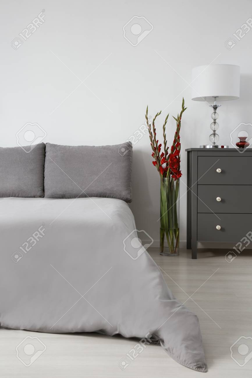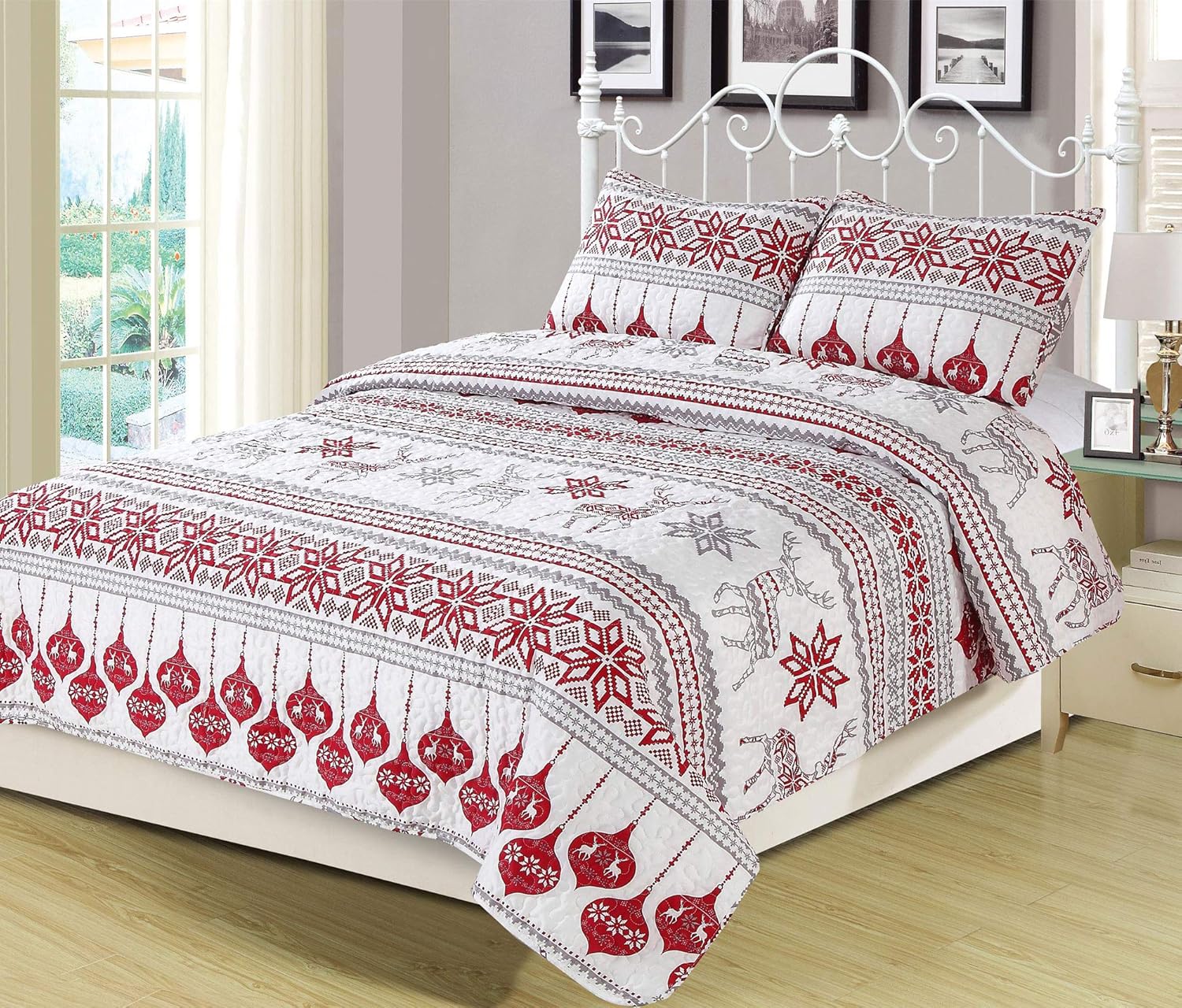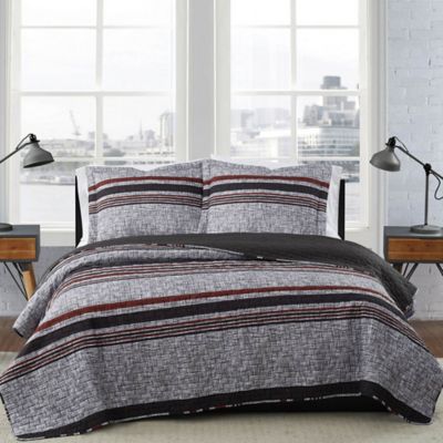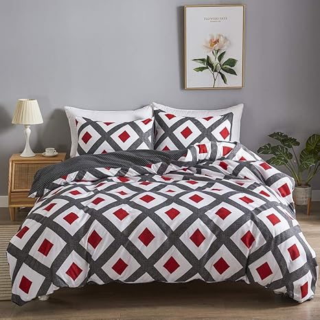 red and grey bedding