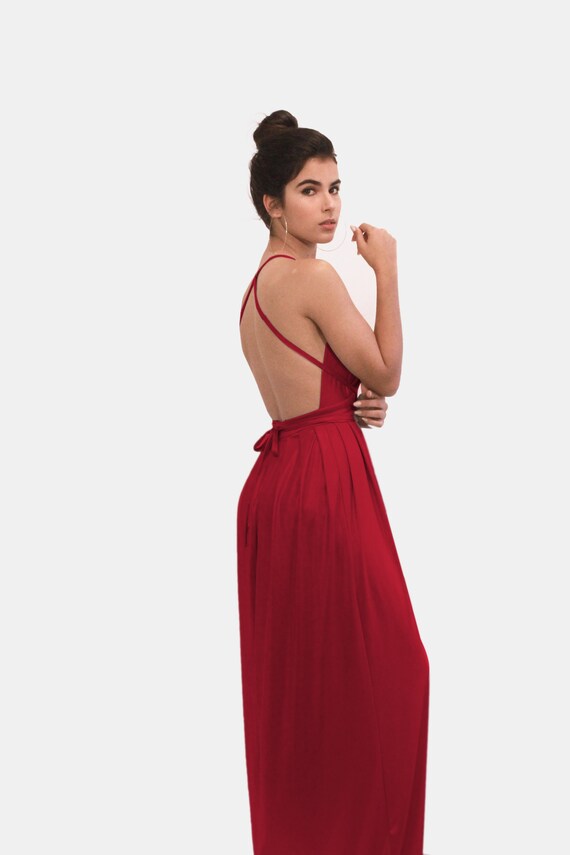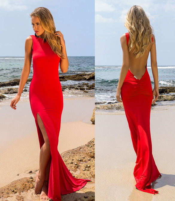 red backless dress