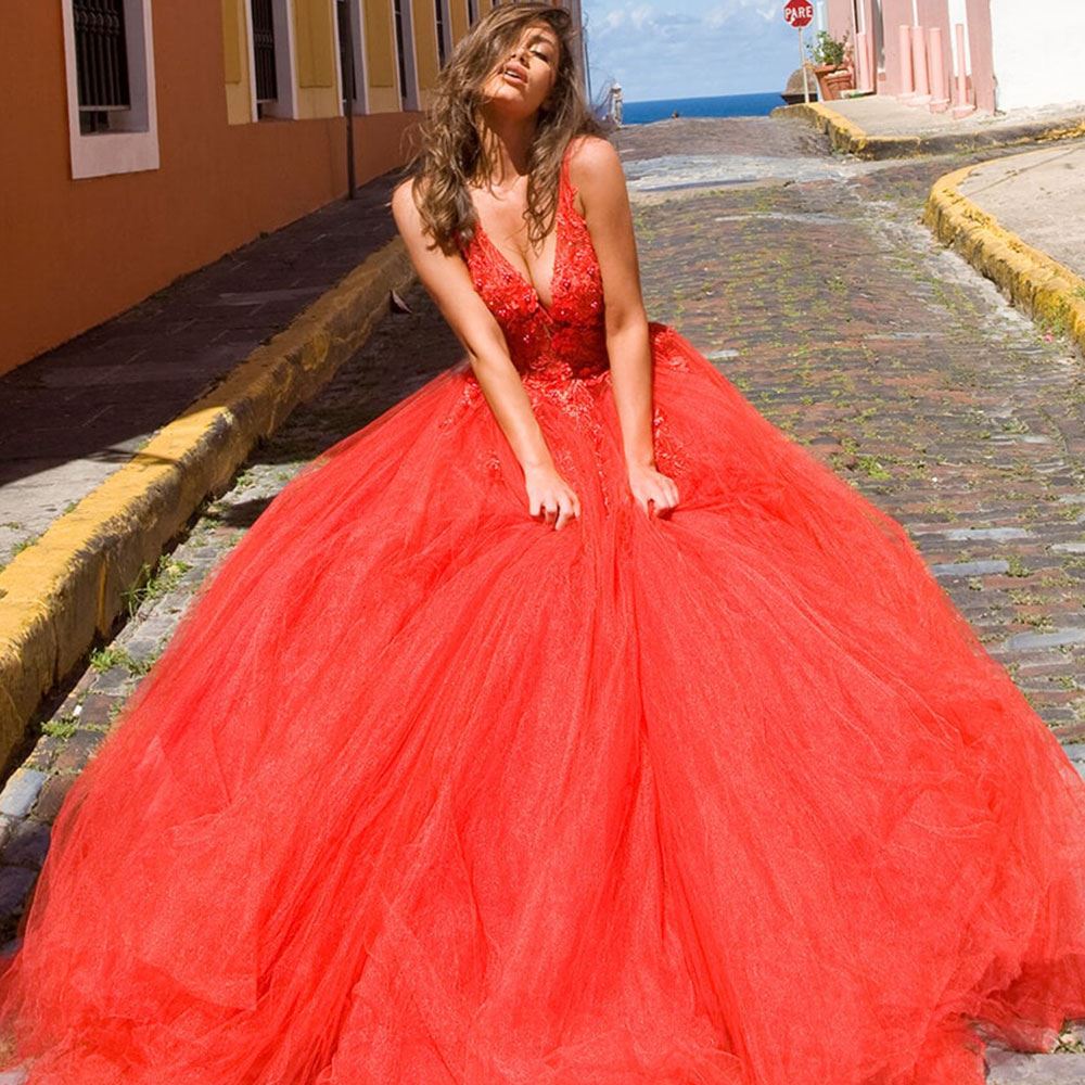 red ball dress